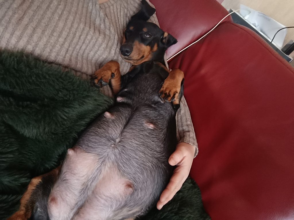 Manche Hündinnen leiden unter morgendlicher Übelkeit – das konnten wir bei Liselotte nicht beobachten. Sie frisst nach wie vor gern. In dieser Woche war sie besonders anhänglich.