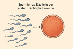 Sperma erreicht die Eileiter, in denen sich reife Eizellen befinden.